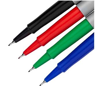 Enhance artwork, notes, and projects with this four-pack of Paper Mate Flair ultrafine assorted-color felt-tip pens. Write highly noticeable reminders, instructions, and other notes with these felt-tip pens. The ultrafine tips allow for precise, detailed results, while the included protective caps ensure ink remains wet and protect papers from unintentional marks. These Paper Mate Flair ultrafine assorted-color felt-tip pens include convenient pocket clips, so you can easily bring them with you to classes, business lunches, and other meetings. - Felt tip draws bold and expressive lines - Black, blue, green, and red vivid colors for a variety of tasks - Ultrafine 0.4mm tip ensures crisp lines with every use - Assorted-color plastic barrels - Assorted Inks: Black/Blue/Green/Red - Four per pack - Comfort grip for superior control - Features a pocket clip for convenient carrying - Water-based acid-free ink