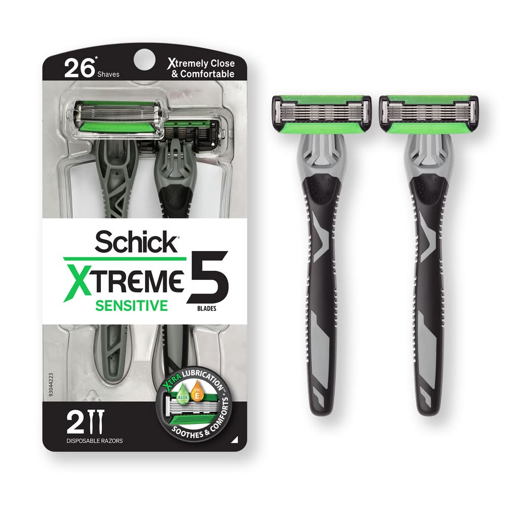 Schick Xtreme 5 Blade Disposable Razors For Mens Sensitive Skin (2 ct)