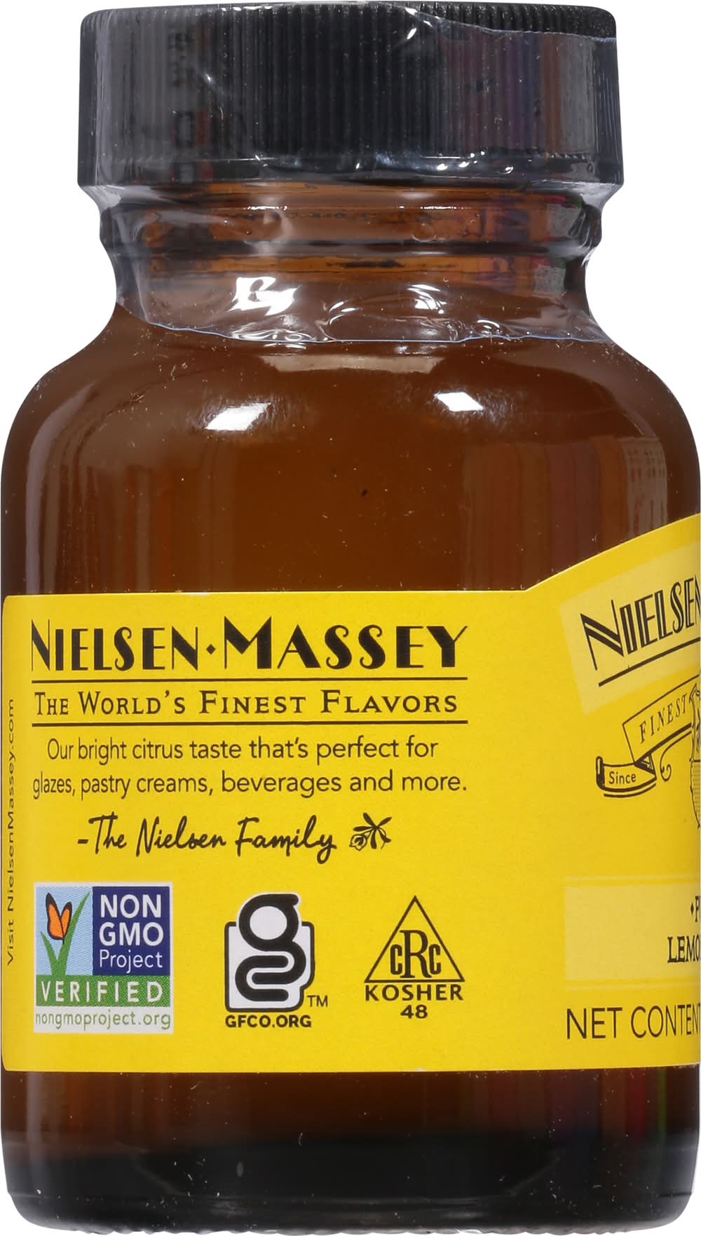 Certified gluten free. gfco.org. Non-GMO Project verified. nongmoproject.org. Finest quality. Since 1907. The world's finest flavors. Our bright citrus taste that's perfect for glazes, pastry creams, beverages and more. - The Nielsens Family. NielsenMassey.com. Visit NielsenMassey.com. Sealed for your protection. Made in the USA. Nielsen-Massey Vanillas, Inc.,