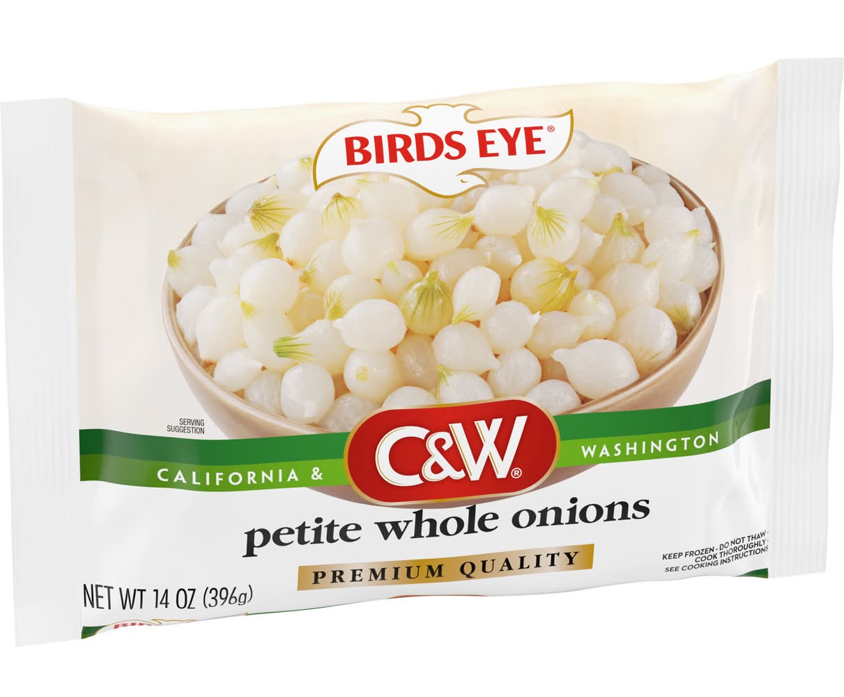 Birds Eye C&W Petite Whole Onions offer a delicious and easy frozen vegetable side dish for your family. These frozen vegetables are premium quality to give your family the best. Serve these frozen petite whole onions as a side dish for grilled chicken or fish or any creation. Prepare these frozen petite whole onions easily by microwaving or cooking on the stovetop in under 10 minutes. Keep the 14 ounce bag in the freezer until you're ready to enjoy. It’s good to eat vegetables, so Birds Eye C&W makes vegetables good to eat. Conagra Brands,