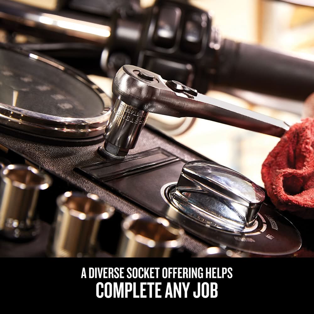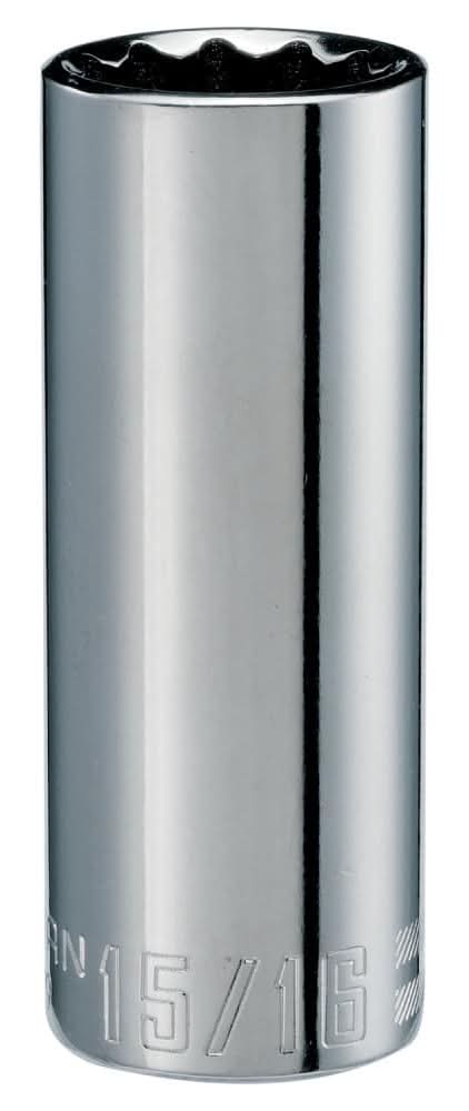 Corrosion resistance: Full polish chrome finish. Quick engagement: 12 point socket with fastener. Increased accessibility: Deep socket. Quick size identification: Large marking. Meets or exceeds ASME specifications. Common applications include automotive mechanical and home repair. Includes: (1) 1/2-in Drive 12 PT Deep Socket SAE (15/16-in). CRAFTSMAN® Full Lifetime Warranty.