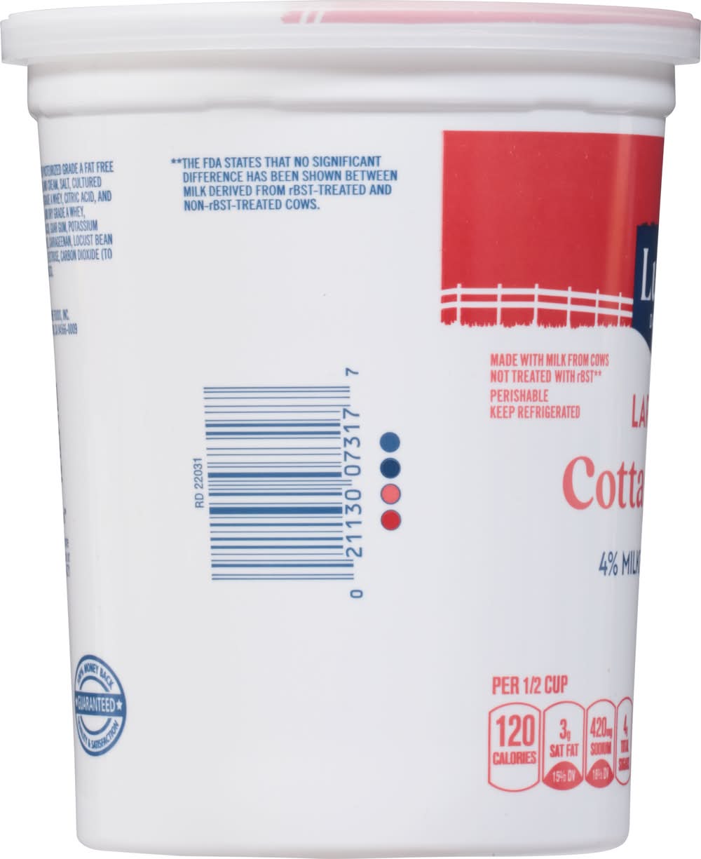 Cottage Cheese, Large Curd, 4% Milkfat Minimum • Lucerne Foods, Inc., P.O. Box 99, Pleasanton, CA, 94566-0009 • Packaging: Reusable