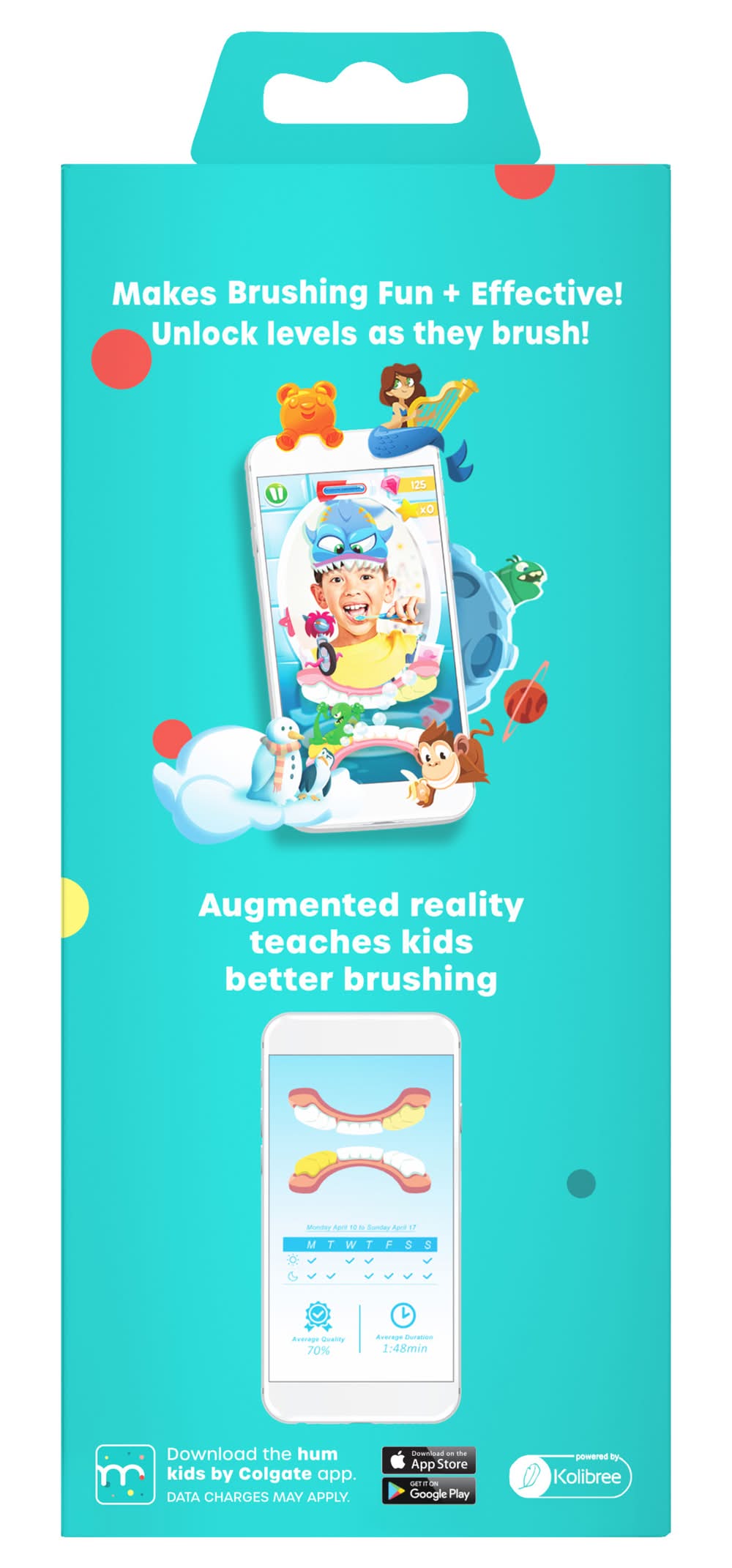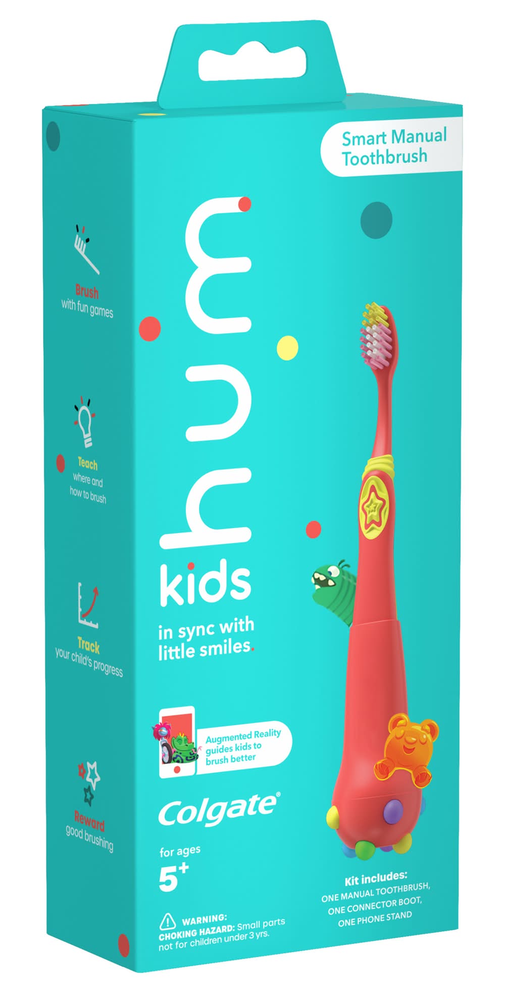 Colgate hum Kids Smart Manual Toothbrush, Coral The Colgate hum Kids Smart Manual Toothbrush helps kids enjoy better brushing. The hum smart toothbrush connects to an app that allows kids to brush with fun games while teaching them where and how to brush. Hum kids rewards good brushing by unlocking new levels and game experiences as your child brushes. The starter toothbrush kit includes an ergonomic handle, kid-friendly, small brush head for easy access to a child’s mouth, and extra soft bristles for a gentle clean. Finally, brushing that's actually fun for your kids! hum by Colgate Kids Smart Toothbrush with a Connected App The Colgate Hum Kids Smart toothbrush uses augmented reality to guide kids to better brushing by unlocking levels as they brush. The hum kids toothbrush app teaches kids where & how to brush and helps your child establish good lifelong brushing habits. Track your child's progress and easily check whether your child missed a spot or an entire brushing session via the parents section. Smart Manual Toothbrush Kit with Phone Stand This Colgate hum kids smart manual toothbrush starter kit comes with one manual toothbrush, one Augmented Reality connector boot, and one phone stand that helps position the phone correctly as kids brush. Designed by the Experts at Colgate Colgate hum kids smart manual toothbrush is designed by the experts. At Colgate, we know the power of a healthy smile and that’s why we created hum - so you can brush better for a cleaner smile. "