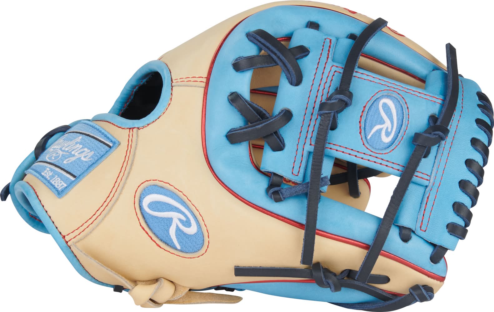 Rawlings Heart Of the Hide Infield Right Hand Throw Glove, 11.5 in, Camel/Columbia Blue
