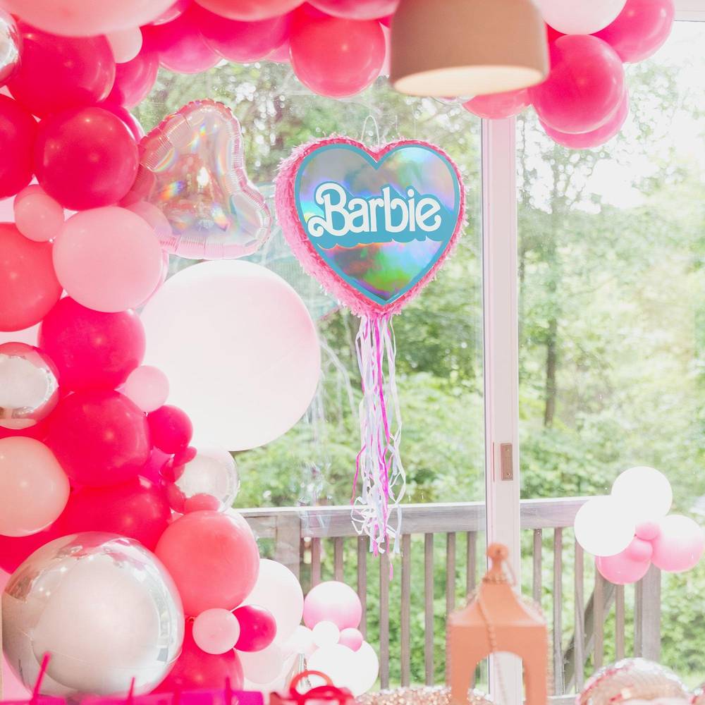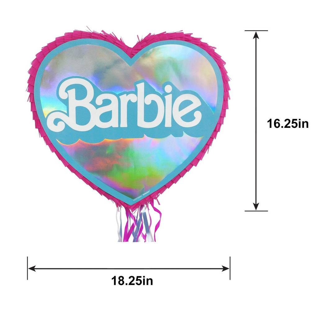 Party City Iridescent Pull String Malibu Barbie Heart Pinata, Women, 18.25in x 16.25in, Hot-Pink