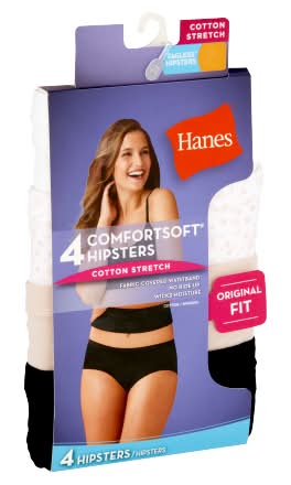 Hanes Comfortsoft Cotton Stretch Tagless Hipsters, 6, Assorted (4 ct)