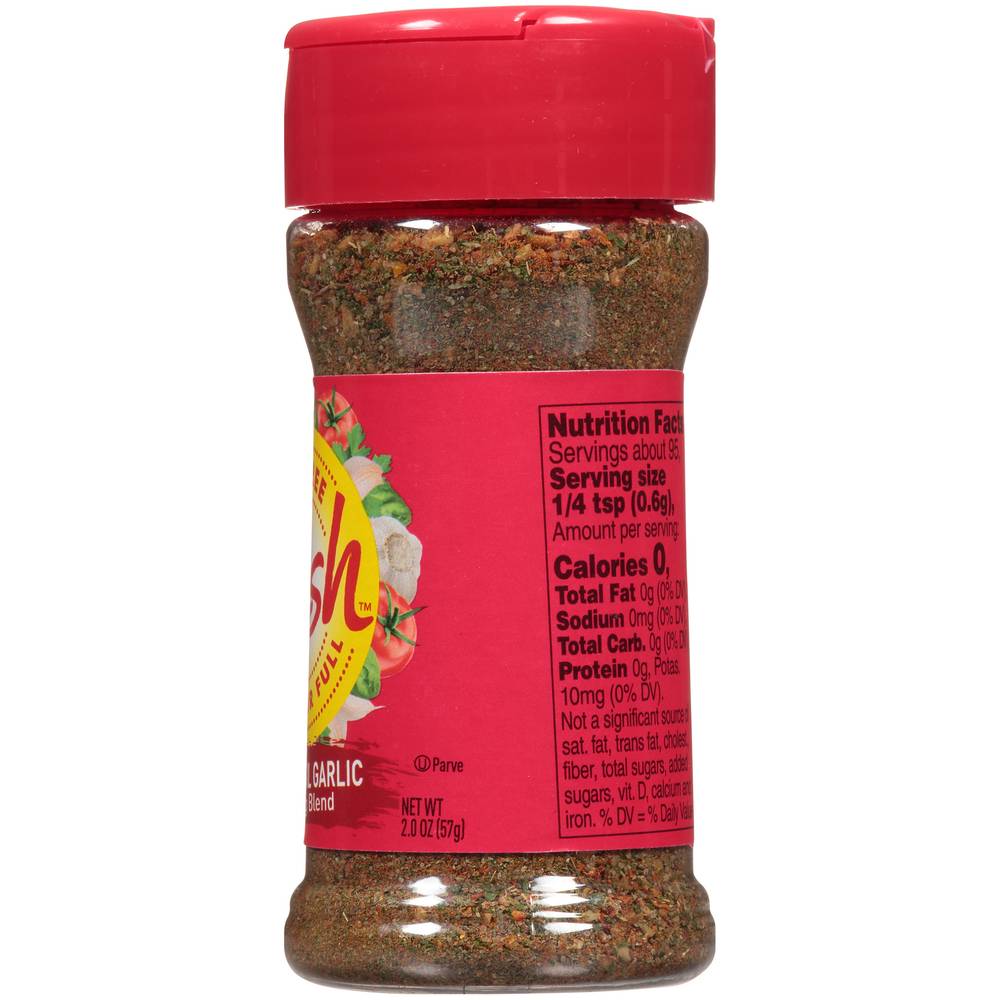 Flavor full. A robust of tomato and herbs bursting with flavor. Create flavorful steak, chicken, and pasta. Use on garlic bread and pizza. Salt free. No MSG. www.mrsdash.com. Questions or Comments? Call 1-800-813-3268 or visit www.mrsdash.com. A robust blend of tomato and herbs bursting with flavor. Create flavorful steak, chicken and pasta. Goes well on garlic bread and pizza. • B&G Foods, Parsippany, NJ, 07054, Ph: 800-813-3268 • Packaging: Reusable