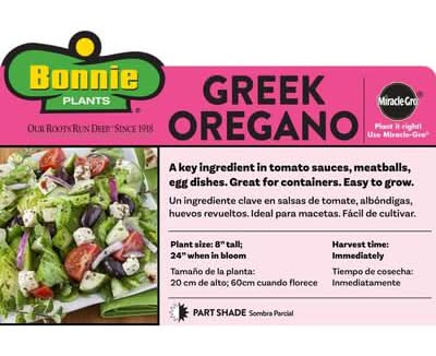 Your Bonnie Plants Reek Oregano Herb Plant delivery options may vary depending on where you are in a city. Enter your address to browse Bonnie Plants Reek Oregano Herb Plant delivery options near you.