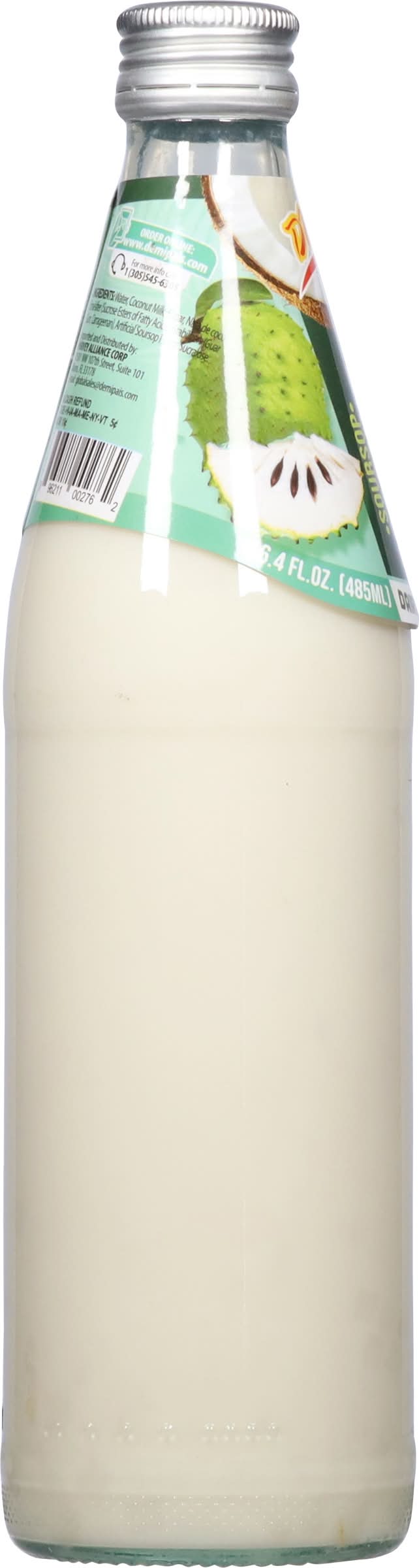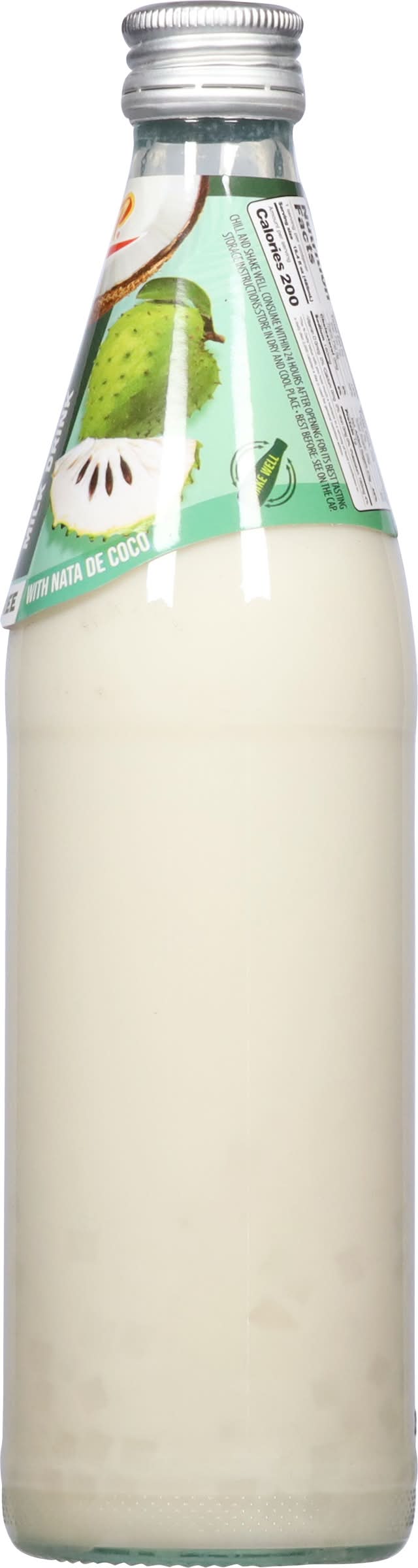 Water, Coconut Milk, Sugar, Nata De Coco, Emulsifier (Sucrose Esters of Fatty Acids), Stabilizer (Guar Gum Carrageenan), Artificial Soursop Flavor, Sucralose