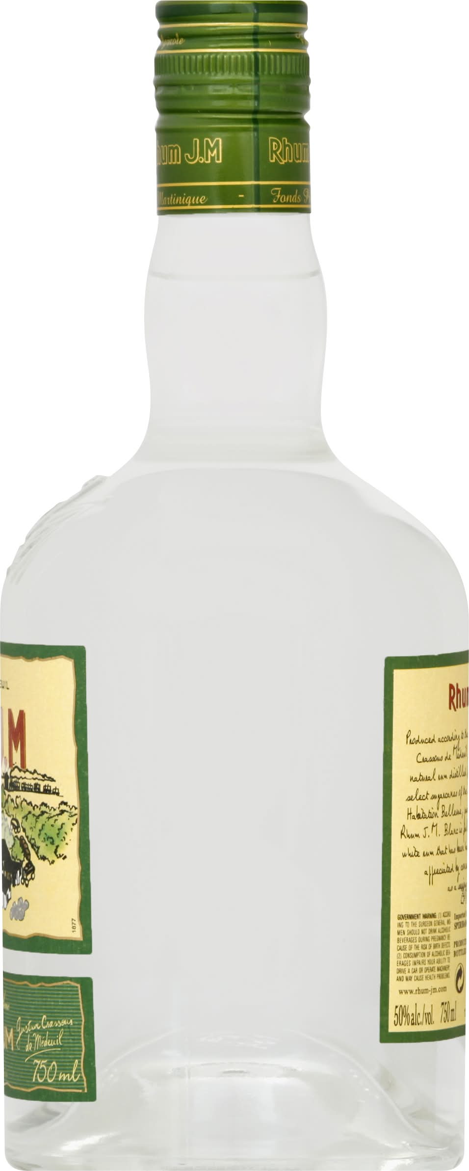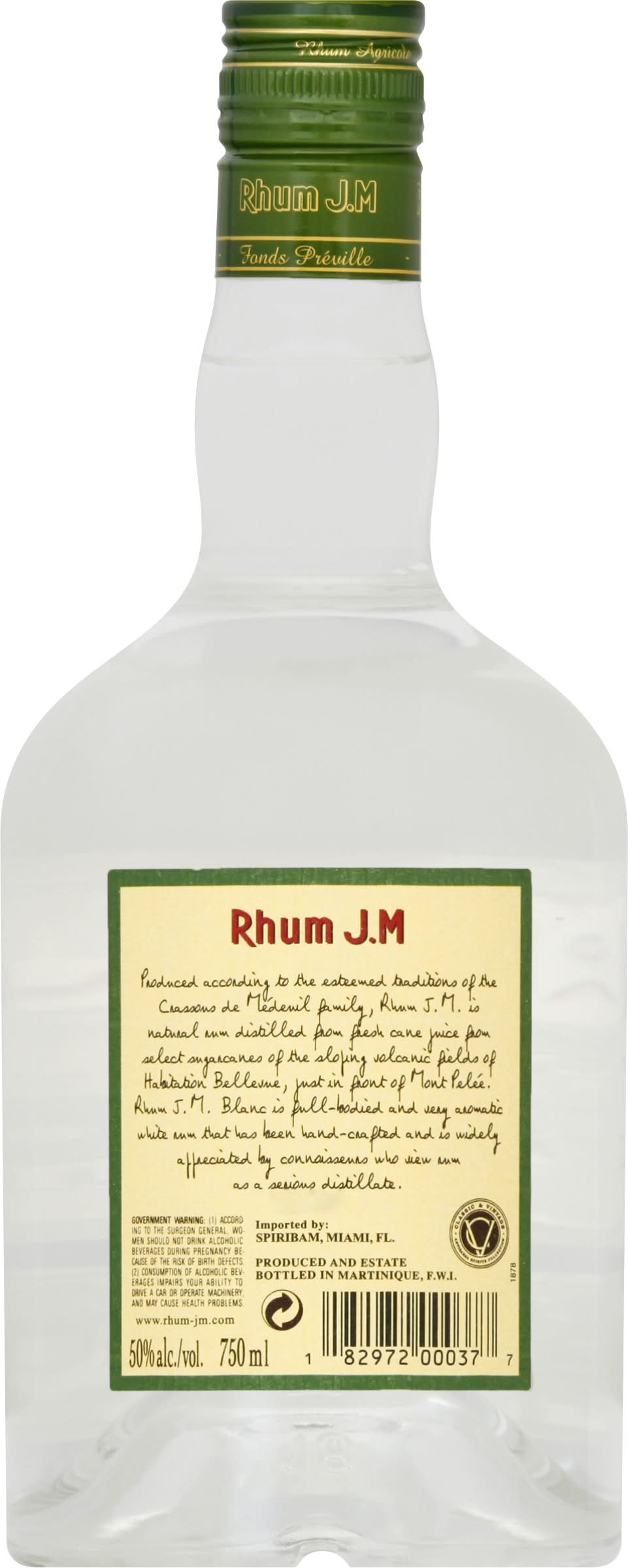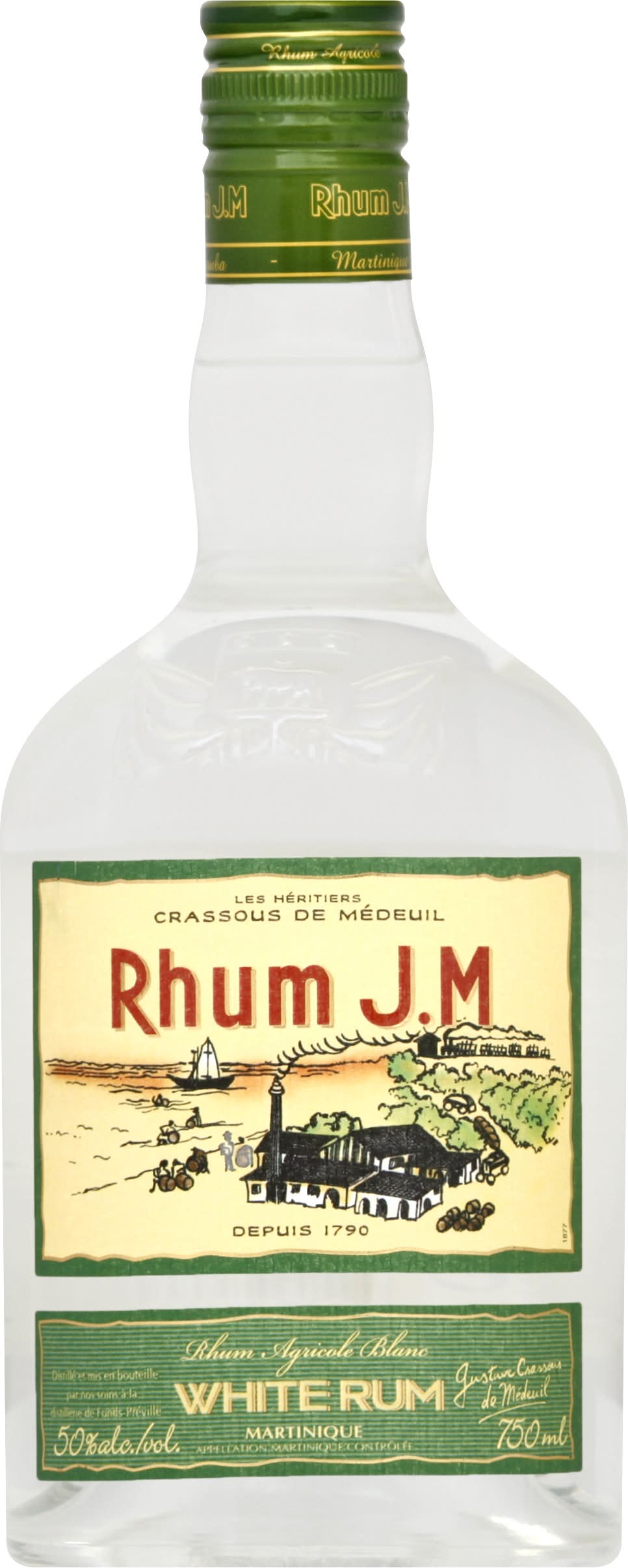 Produced according to the esteemed traditions of the Crassons de Medeuil family, Rhum J.M. is natural rum distilled from fresh cane juice from select sugarcanes of the sloping volcanic fields of Habitation Belleume, just in front of Mont Pelee. Rhum J.M. Blanc is full-bodied and very aromatic white rum that has been hand-crafted and is widely appreciated by connoisseurs who view rum as a serious distillate. Classic & vintage www.rhum-jm.com. 50% alc./vol. • Alcohol by volume: 50% • Spiribam,