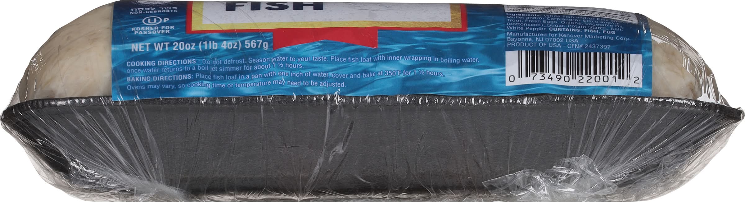 Directions for use: Directions: Cooking Directions: Do not defrost. Season water to your taste. Place fish loaf with inner wrapping in boiling water, once water returns to a boil let simmer for about 1 1/2 hours. Baking Directions: Place fish loaf in a pan with one inch of water, cover and bake at 350 degrees F for 1 1/2 hours. Ovens may vary, so cooking time or temperature may need to be adjusted. Keep frozen. Storage recommendation: Keep frozen.