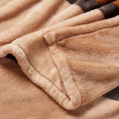 Get cozy and warm in bed with the help of Blanket. Feel the warmth through this polyester blanket during those chilly days. Its made of machine washable material so its easy to clean and maintain. Simple yet richly textured, it is warm and fuzzy-perfect for cold weather and cuddling on movie night. Looks like home, feels like you. • Color: Khaki border stripe • Size: King
