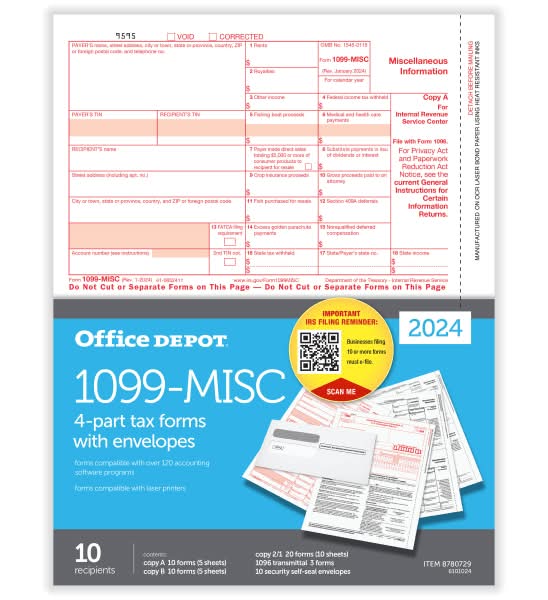 Your Office Depot Laser 4-part Tax Forms and Envelopes 1099-misc delivery options may vary depending on where you are in a city. Enter your address to browse Office Depot Laser 4-part Tax Forms and Envelopes 1099-misc delivery options near you.