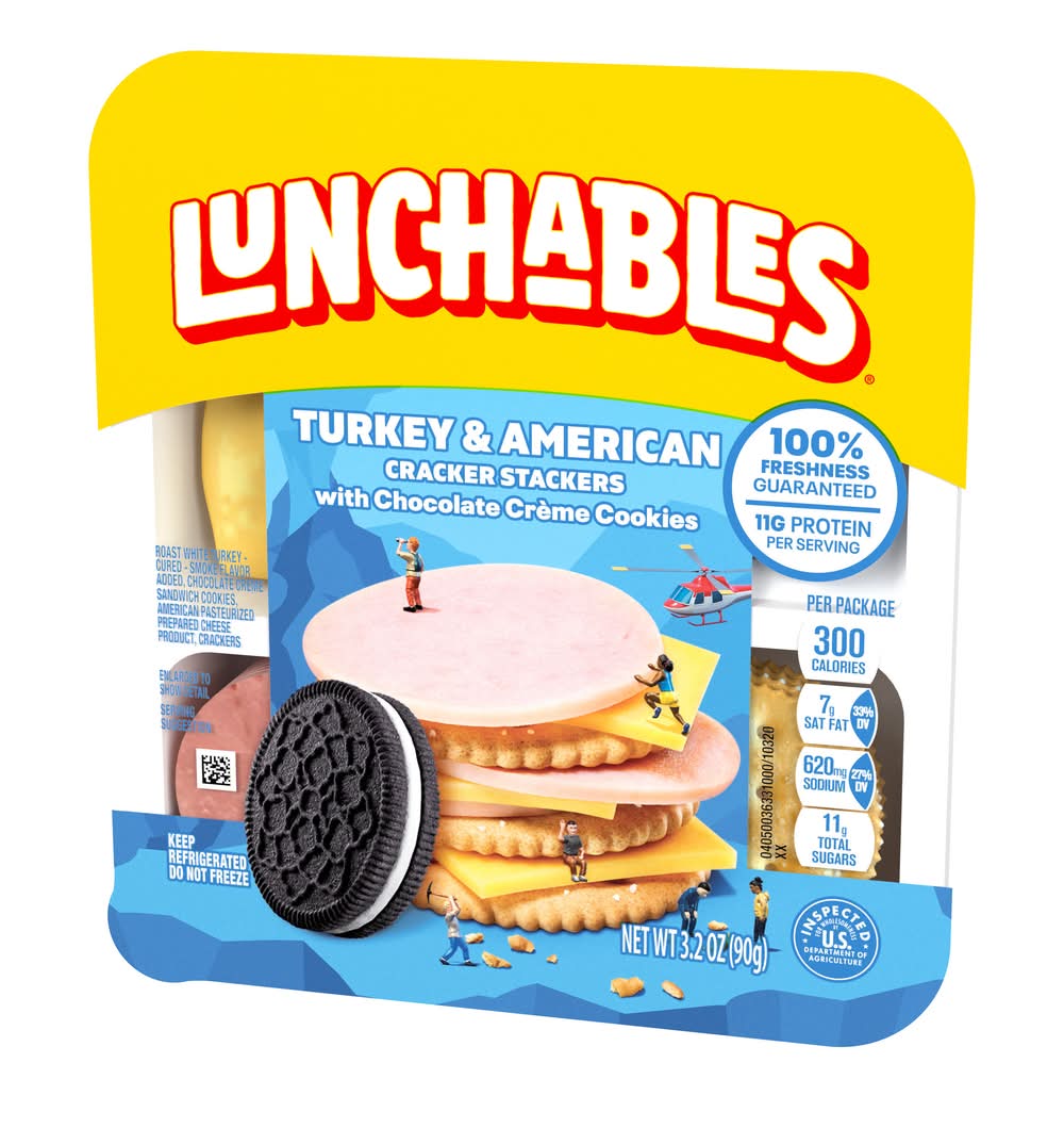 ROAST WHITE TURKEY - CURED - SMOKE FLAVOR ADDED (WHITE TURKEY, WATER, POTASSIUM LACTATE, CONTAINS LESS THAN 2% OF MODIFIED CORNSTARCH, DEXTROSE, SALT, CARRAGEENAN, SODIUM PHOSPHATES, SODIUM DIACETATE, POTASSIUM SALTS, SODIUM ASCORBATE, NATURAL AND ARTIFICIAL FLAVOR, SODIUM NITRITE, SMOKE FLAVOR), CHOCOLATE CREME SANDWICH COOKIES (ENRICHED FLOUR [WHEAT FLOUR, NIACIN, REDUCED IRON, THIAMINE MONONITRATE, RIBOFLAVIN, FOLIC ACID], SUGAR, SOYBEAN OIL, PALM AND SOYBEAN OIL, COCOA [PROCESSED WITH ALKALI], DEXTROSE, HIGH FRUCTOSE CORN SYRUP, CONTAINS 2% OR LESS OF CORN STARCH, SODIUM BICARBONATE [LEAVENER], SALT, ARTIFICIAL FLAVOR, SOY LECITHIN, CHOCOLATE), CONTAINS: WHEAT, SOY, AMERICAN PASTEURIZED PREPARED CHEESE PRODUCT (MILK, WATER, MILKFAT, MILK PROTEIN CONCENTRATE, WHEY, WHEY PROTEIN CONCENTRATE, SODIUM CITRATE, SALT, LACTIC ACID, SORBIC ACID AS A PRESERVATIVE, CHEESE CULTURE, ENZYMES, OLEORESIN PAPRIKA [COLOR], ANNATTO [COLOR], WITH SUNFLOWER LECITHIN ADDED FOR SLICE SEPARATION), CONTAINS: MILK, CRACKERS, ENRICHED FLOUR [WHEAT FLOUR, NIACIN, REDUCED IRON, THIAMINE MONONITRATE, RIBOFLAVIN, FOLIC ACID], VEGETABLE OIL SHORTENING (CANOLA OIL AND/OR FRACTIONATED PALM OIL, AND/OR SOYBEAN OIL, AND/OR PALM OIL), SUGAR, CONTAINS LESS THAN 2% OF SALT, BAKING SODA, SOY LECITHIN, NATURAL TYPE FLAVOR, CONTAINS: WHEAT, SOY. Contains: CONTAINS: WHEAT, SOY, MILK.