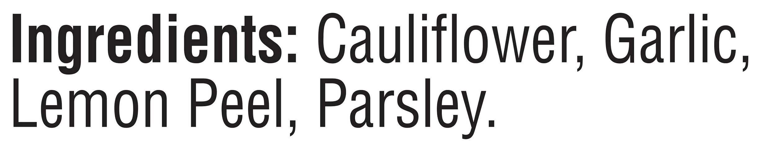 Cauliflower, Garlic, Lemon Peel, Parsley Contains: None Additives: None