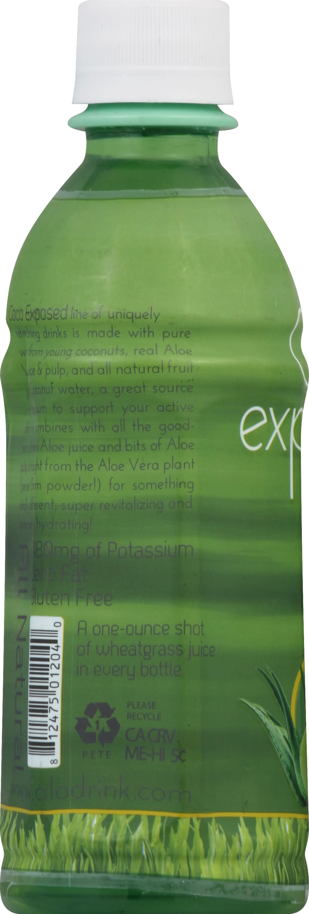 Natural Coconut Water from Concentrate, Aloe Vera Juice, Aloe Vera Pulp, Wheatgrass Juice from Concentrate, Citric Acid, Vitamin C (Ascorbic Acid).