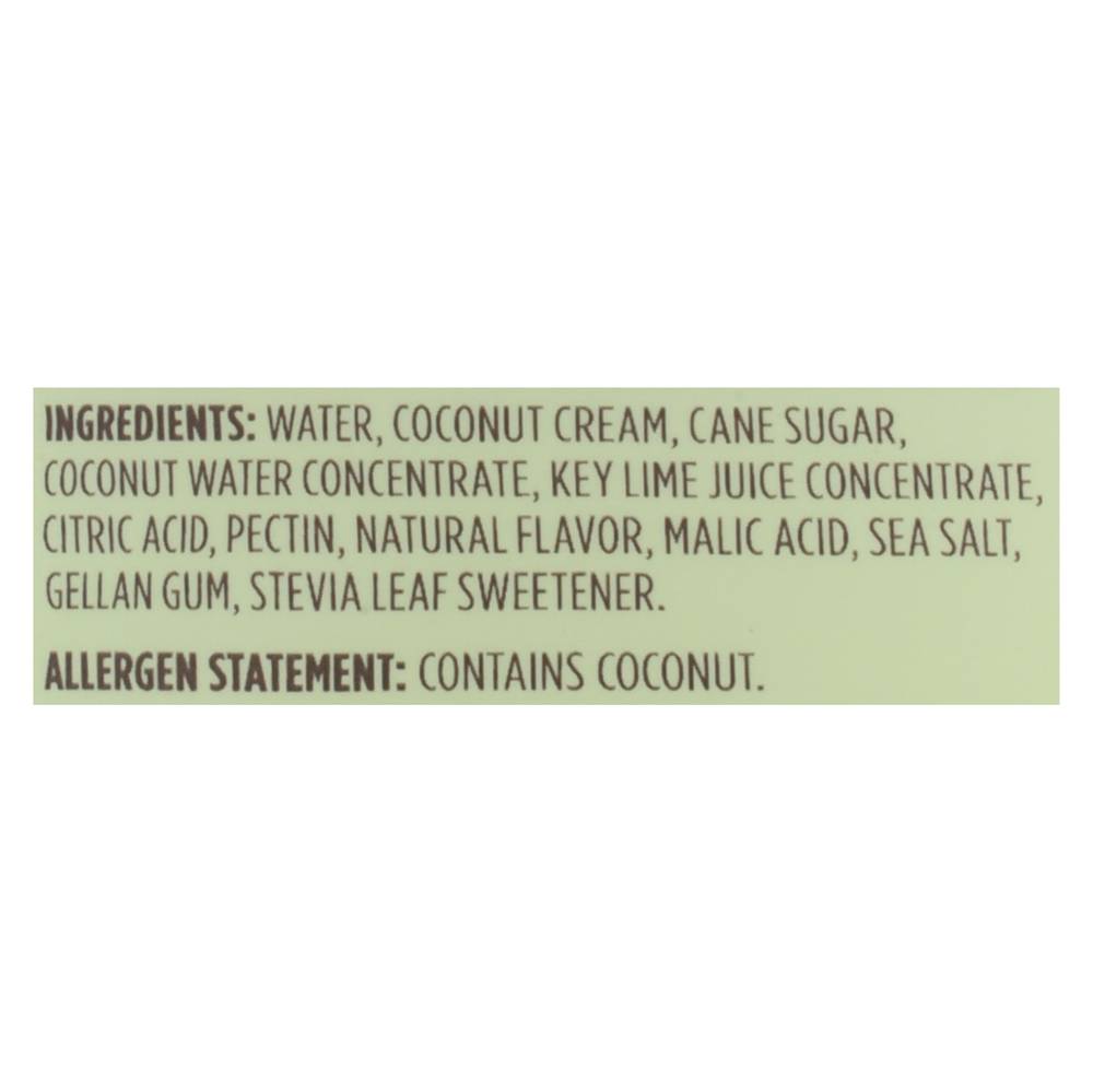 Water, Coconut Cream, Cane Sugar, Coconut Water Concentrate, Key Lime Juice Concentrate, Citric Acid, Pectin, Natural Flavor, Malic Acid, Sea Salt, Gellan Gum, Stevia Leaf Sweetener. Contains: Contains Coconut and/or Coconut Products