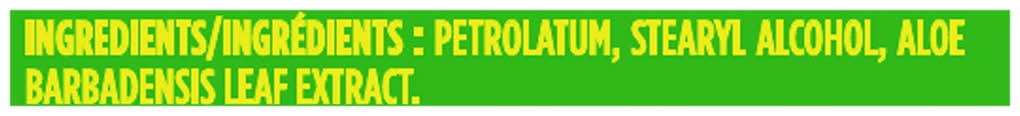 Ingredients: Petrolatum, Stearyl Alcohol, Aloe Barbadensis Leaf Extract