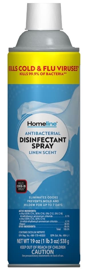 Protect Your Home, Protect Your Family: Homeline Disinfectant SprayUnleash the power of deep cleaning with our Linen-scented Homeline Disinfectant Spray. This ultimate home defense weapon:Obliterates 99.9% of bacteria and viruses, including COVID-19Tackles germs on ALL surfaces from hard touchpoints like doorknobs and remotes to soft fabricsProvides lasting protection with up to 7 days of mold and mildew preventionEasy to use: Simply spray and let air dryLeaves behind a fresh Linen fragranceOne spray. Total home protection. Keep your living space clean, fresh, and safeguarded.