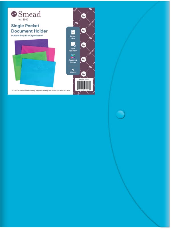 Smead Single Pocket Poly Envelope, Letter Size, Assorted (4 ct)