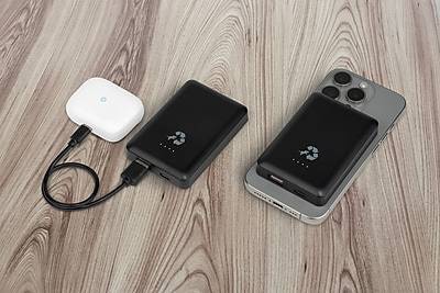 Magnetic wireless charging for your iPhone with a 5,000 mAh battery. Delivers up to 15W wireless charging speeds on contact, and features a 20W Fast Charge Type-C Port (Input/Output) for recharging or powering non-wireless devices. Includes one USB-C to USB-C charging cable. - 5W / 7.5W / 10W / 15W Wireless Charging - 5,000mAh Battery - 20W Type-C Input/Output - 100% PCR Plastic - 4 LED Indicator Light - 100% Certified Recycled Plastic - Plastic-Free Packaging - Carbon Neutral - Free E-Waste Recycling