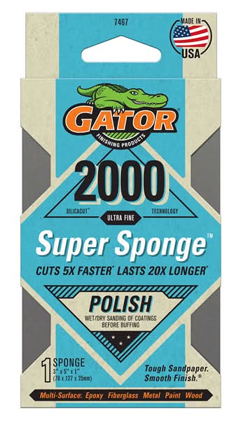 This exceptional sponge takes the performance and quality of premium grain latex-backed sandpaper and adds the convenience of a built in sanding block. These innovative premium sanding sponges greatly outperform traditional sanding sponges and provide much better finishing results. Offered in a wide and specific grit range to take your project from beginning to end. 2000 grit is best for wet or dry sanding of color and clear coat finishes, and removing imperfections in top coats. 7467, 1 Pack.
