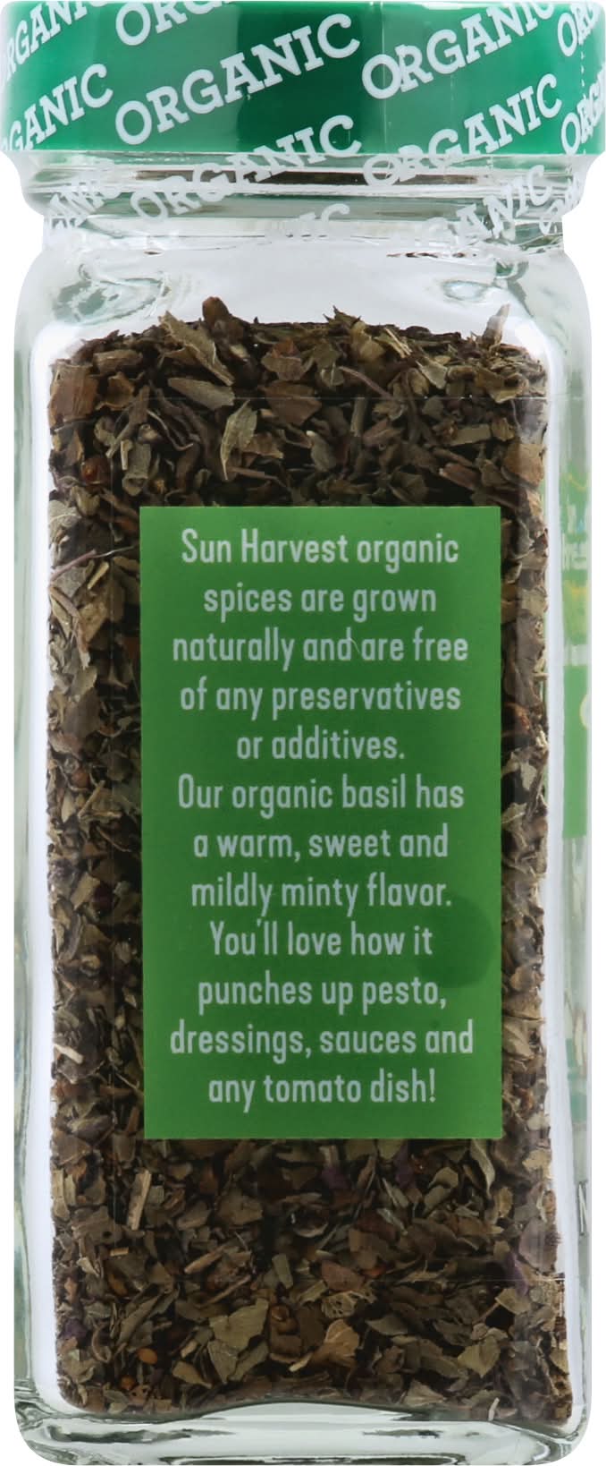 USDA Organic. Certified Organic by: Quality Assurance International. Sun Harvest organic spices are grown naturally and are free of any preservatives or additives. Our organic basil has a warm, sweet and mildly minty flavor. You'll love how it punches up pesto, dressings, sauces and any tomato dish! 100% satisfaction guaranteed or your money back. AMERIFOODS TRADING,