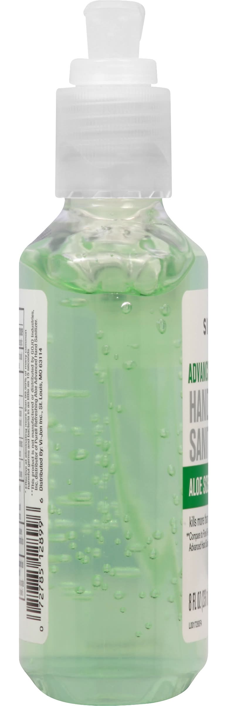 Kills more than 99.99% of germs (Effective at elimating 99.99% of many common harmful germs and bacteria in as little as 15 seconds). Compare to Purell Refreshing Aloe Advanced Hand Sanitizer (This product is not manufactured or distributed by GOJO Industries, Inc. distributor of Purell Refreshing Aloe Advanced Hand Sanitizer). VI JON,