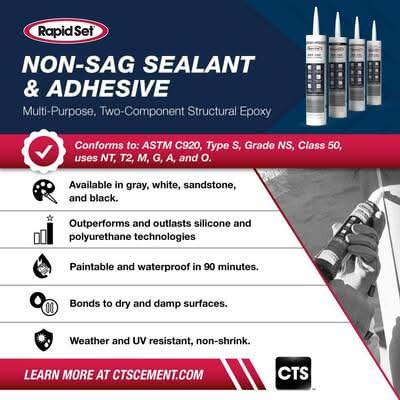 Rapid Set Multi-Purpose Non-Sag Sealant and Adhesive is a hybrid silane polyether sealant that outperforms and outlasts silicone and polyurethane technologies. It is 100% solvent free, contains no isocyanates, and can be painted and waterproofed in 24 hours. Its superior sag resistance makes it ideal for horizontal, vertical, and overhead application in most climates (including cold or damp climates). Its unique nanotechnology promotes superior adhesion to Kynar 500 (PVDF coated metal), galvanized metal, aluminum, wood, glass, cement board, brick, concrete, stone, aged asphalt, and more. Color: Gray