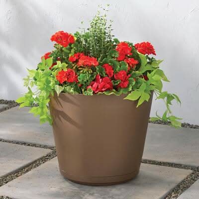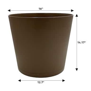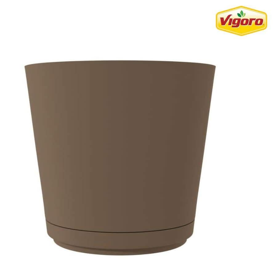 Trust Vigoro to fulfill your garden needs by using Vigoro's planters and pots to add an ornate touch to your front porch, patio, living space or window seal. Sleek and simple designer look at value-oriented pricing. The Kyra collection will stand the test of time and weather elements with its durable, resin construction. Timeless colors include black, clay, chocolate and cottage stone to complement colorful blooms. Whether your decorating style is minimalist or maximalist, this planter will shine in any setting. • Color: Chocolate • Size: Large
