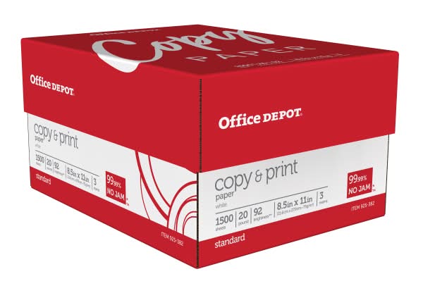 If you and your office go through reams of paper in no time flat, stock up on Office Depot copy and print paper. This Office Depot paper is made for smooth, consistent performance and is available in large quantities, so it's easy to keep your production stations stocked and ready to go. 104 (Euro), 92 (U.S.) brightness yields vivid text and images. Acid-free paper resists discoloration over time. Keep spare paper on hand so you never run out in the middle of a job. 20-lb paper is ideal for everyday business needs. Includes 500 sheets per ream in a case of 3 reams. Eco-conscious choice - has one or more meaningful eco-attributes or eco-labels. Have the right tools in place to prepare your workforce to work from anywhere. • Pack size: 3 • Color: White
