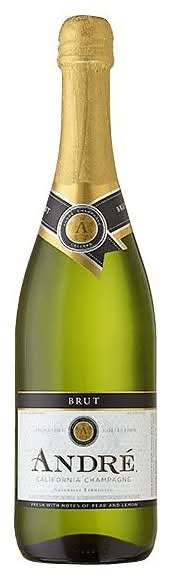 Andre Brut is a California champagne characterized by a medium-dry blend. It presents crisp white wine grape flavors complemented by green apple aromas, offering a light mouthfeel. Alcohol by volume: 10%