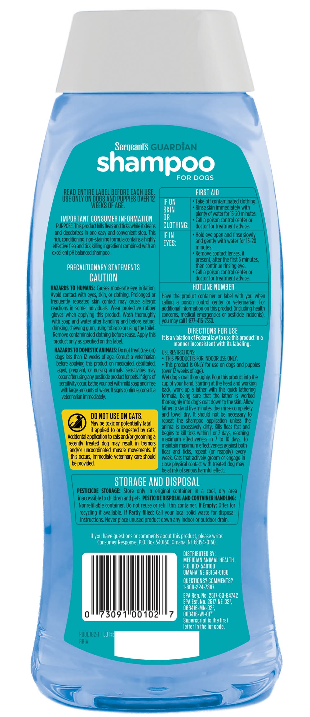 Sergeant's Guardian Flea and Tick Dog Shampoo in Clean Cotton, 18 oz Meridian Animal Health,