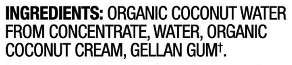 Organic Coconut Water from Concentrate, Water, Organic Coconut Cream, Gellan Gum(a). (a) Gellan Gum is Derived from a Natural Source and Added for Consistency in Texture. Contains: Treenuts, Coconuts Additives: None