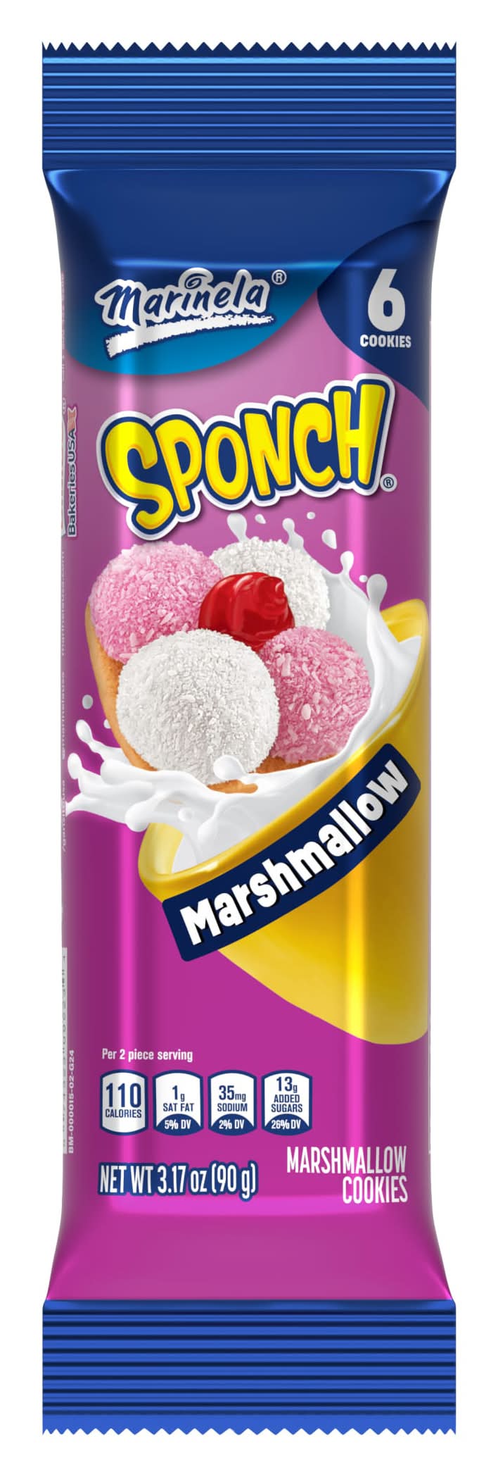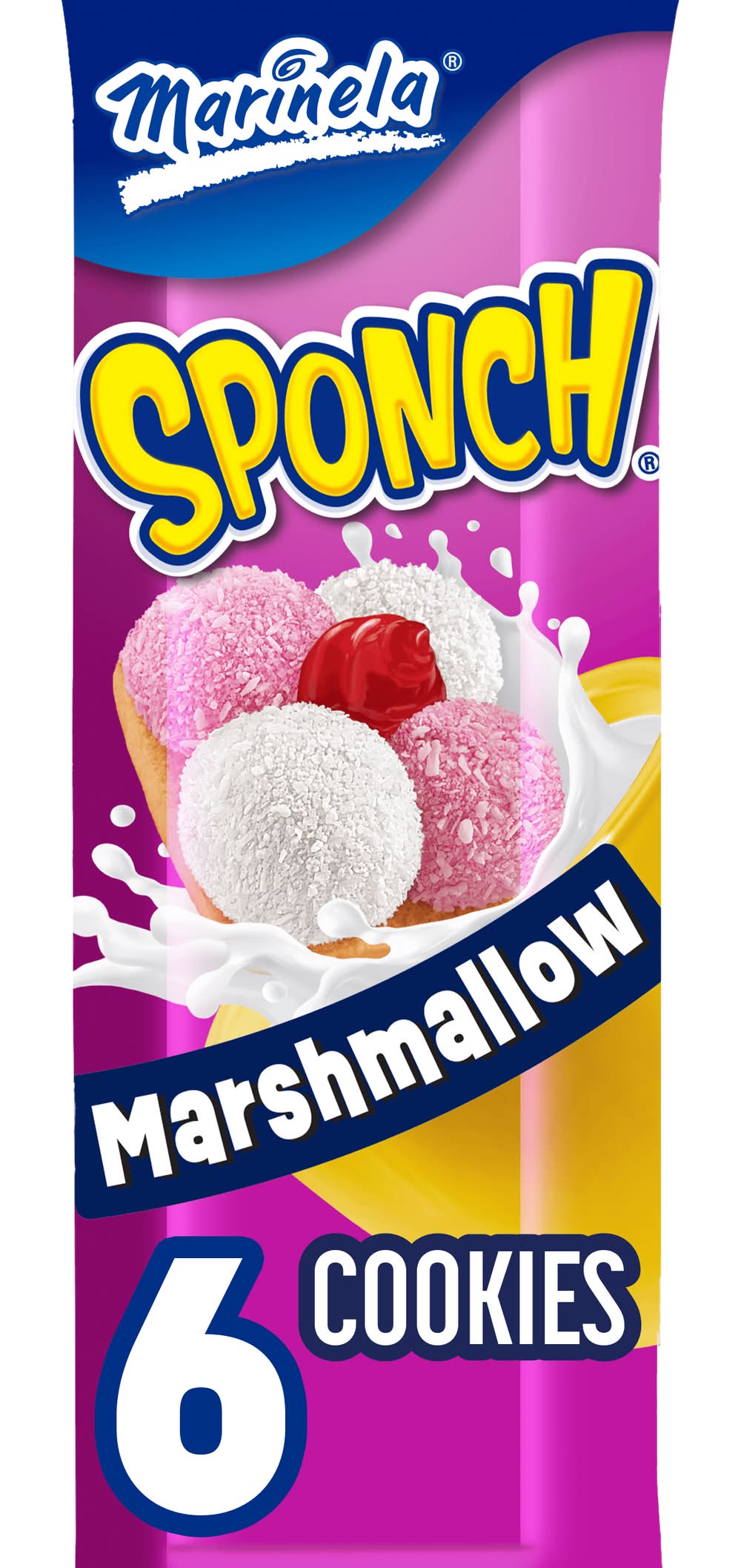 Enjoy the delectable taste of a crispy cookie topped with artificially flavored marshmallow and dusted with coconut, then finished off with just the right amount of strawberry topping. No need to go to the bakery; Sponch cookies are wrapped for freshness, every time. Flavor: Marshmallow-coconut-strawberry