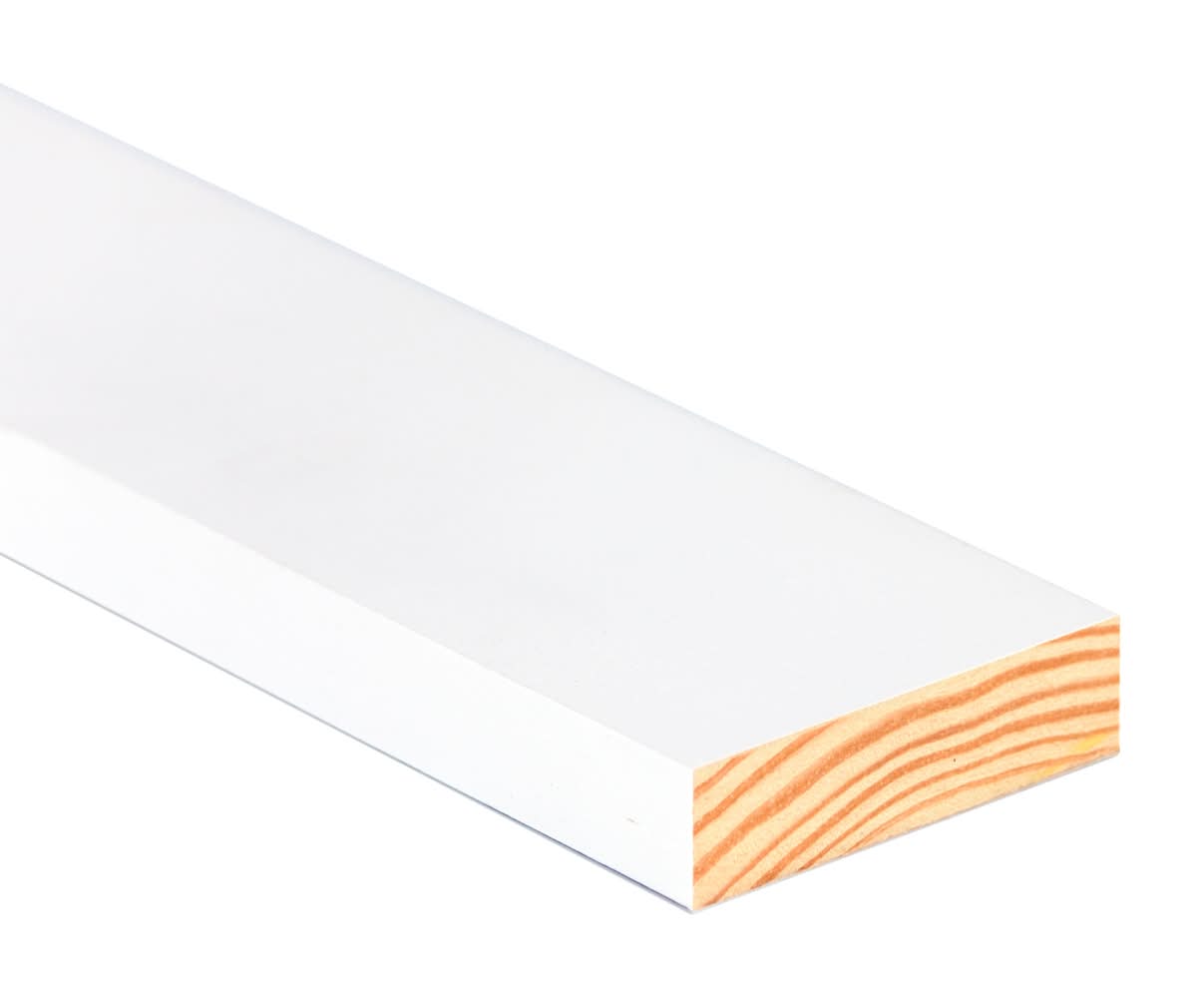 Applications for a 1 in. x 4 in. x 8 ft. Primed Finger-Joint Pine Board are: fascia, corner boards, trim base molding, furniture parts, shelving, cabinets, etc. It is primed for your convenience and therefore ready to paint. This Radiata Pine finger joint primed board can be used for interior and exterior uses, separating it from many other products. • Color: White • Size: 1in x 4in x 8ft