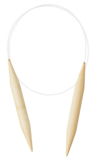 These needles feature shafts with even thickness—promising neat stitches and finishing. The needle point has a round shape and delicate finish which helps to keep your yarn from splitting. Bamboo with flexible soft cord.