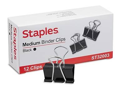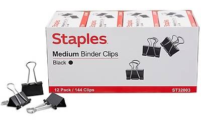 Staples Binder Clips St32003, Medium, Black (12 x 144 ct)