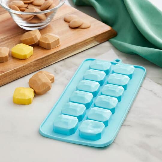 Make delicious chocolates or candies with this gemstone candy mold by Celebrate It. Light blue. 4.134" x 8.307" x 0.63" 100% silicone