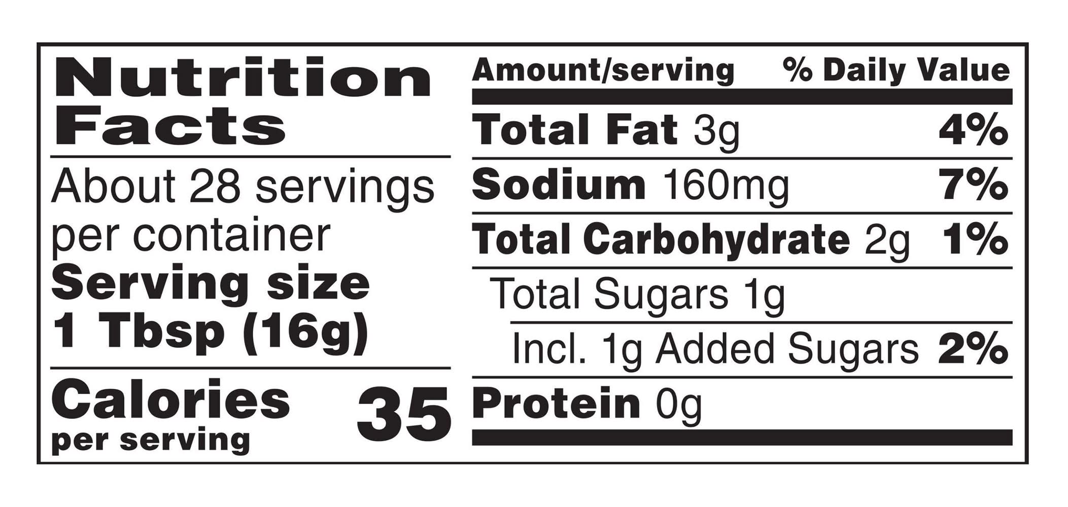 Water, Canola Oil, Distilled Vinegar, Tomato Puree, Sugar, Buttermilk, Salt, Modified Corn Starch, Dried Onion, Dried Garlic, Lemon Juice Concentrate, Spices, Propylene Glycol Alginate, Xanthan Gum, Dried Green Chili Pepper, Dried Chipotle Pepper, Lactic Acid, Citric Acid, Polysorbate 60, Titanium Dioxide (Color), Potassium Sorbate and Sodium Benzoate and Calcium Disodium EDTA (to Preserve Freshness) Contains: Milk, Corn