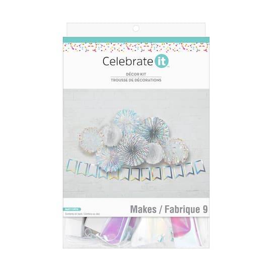 Buy the Decor Kit by Celebrate It at Michaels. Perfect for your next birthday, graduation party or event, this decor kit will be a great addition to your party. Available in assorted colors. Makes 7 pieces. Paper. 14 - banner shapes6 - double-sided adhesive squares. 6 - double-sided adhesive squares4 - 2.5" (6.3 cm) circles. 4 - 2.5" (6.3 cm) circles3 - 12" (30.4 cm) paper fans. Decor Kit by Celebrate It