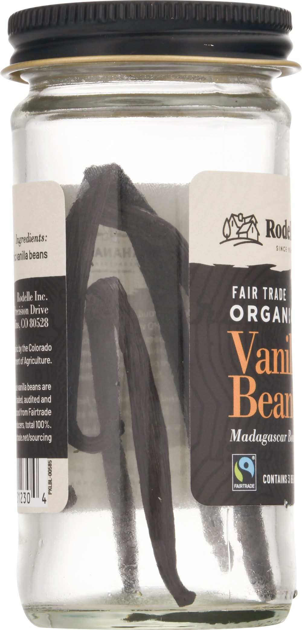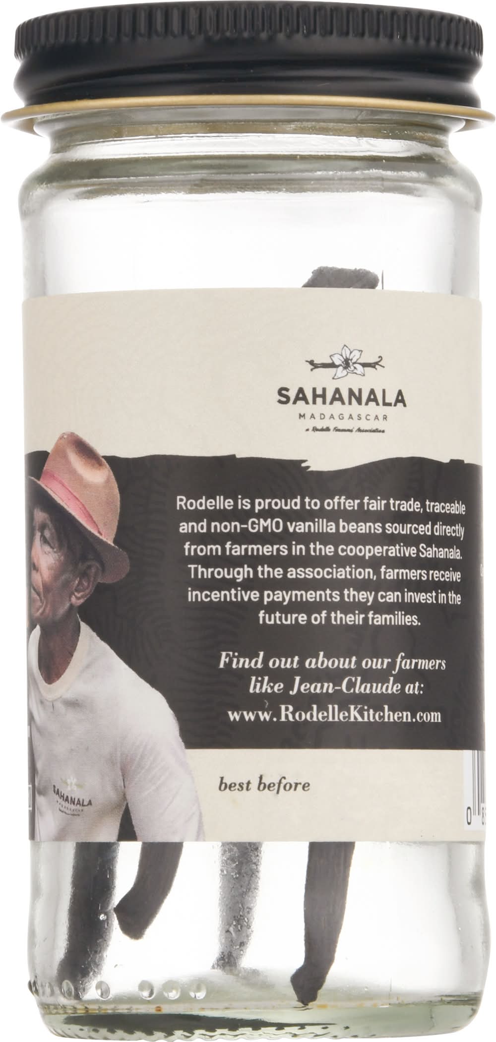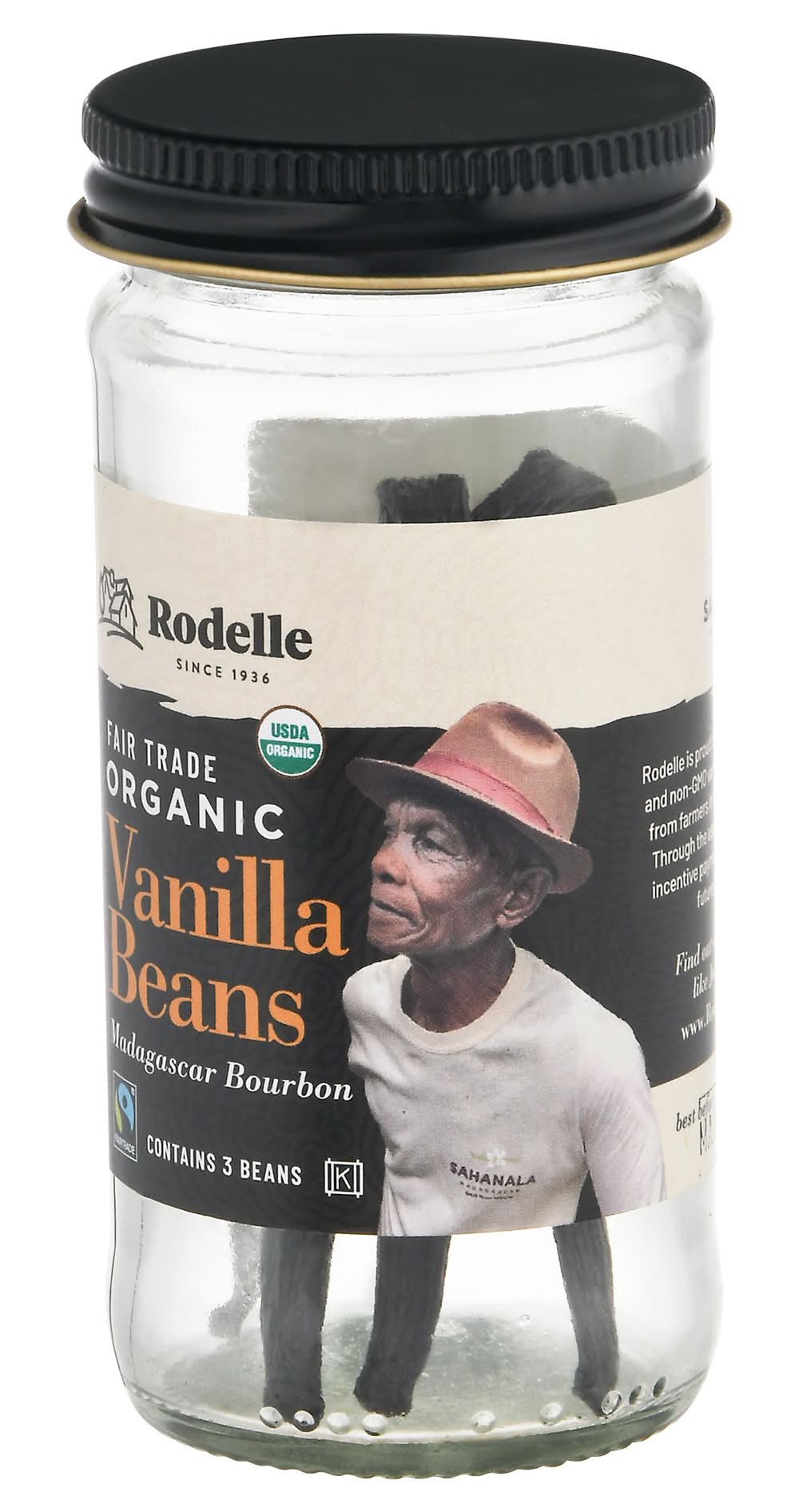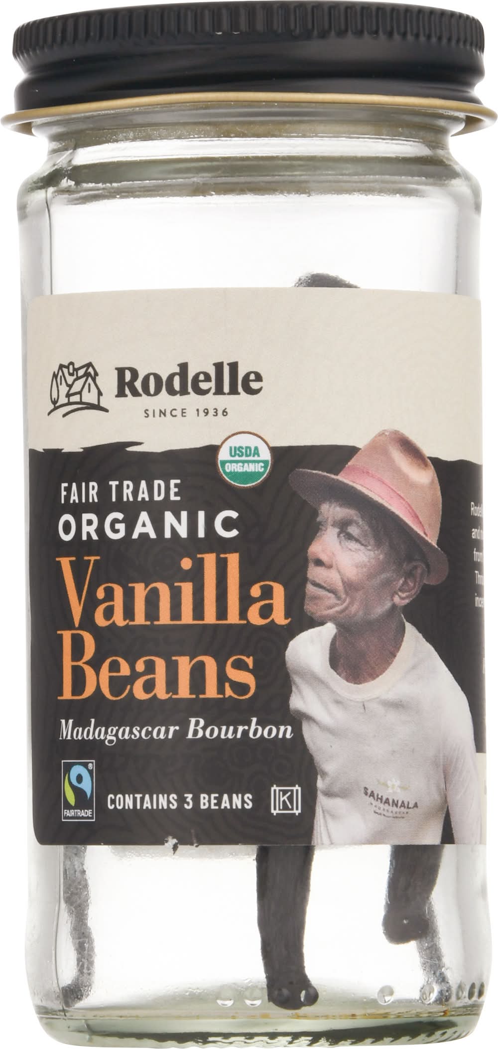 USDA organic. Certified organic by the Colorado Department of Agriculture. Since 1936. Sahanala Madagascar. www.RodelleKitchen.com. Find out about our farmers like Jean-Claude at: www.RodelleKitchen.com. Rodelle is proud to offer fair trade, traceable and non-GMO vanilla beans sourced directly from farmers in the cooperative Sahanala. Through the association, farmers receive incentive payments they can invest in the future of their families. Fair trade. Fairtrade vanilla beans are certified, traded, audited and sourced from Fairtrade producers, total 100%. Visit info.fairtrade.net/sourcing. Rodelle Inc.,
