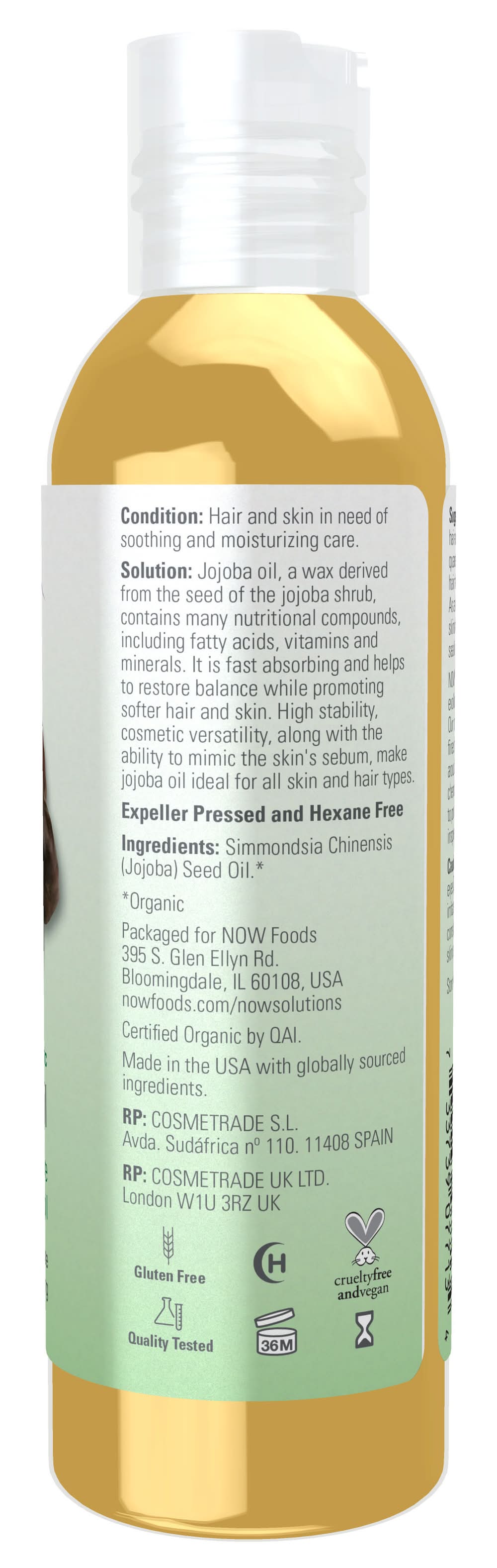 Organic Simmondsia Chinensis Jojoba Seed Oil. Contains: None Additives: None