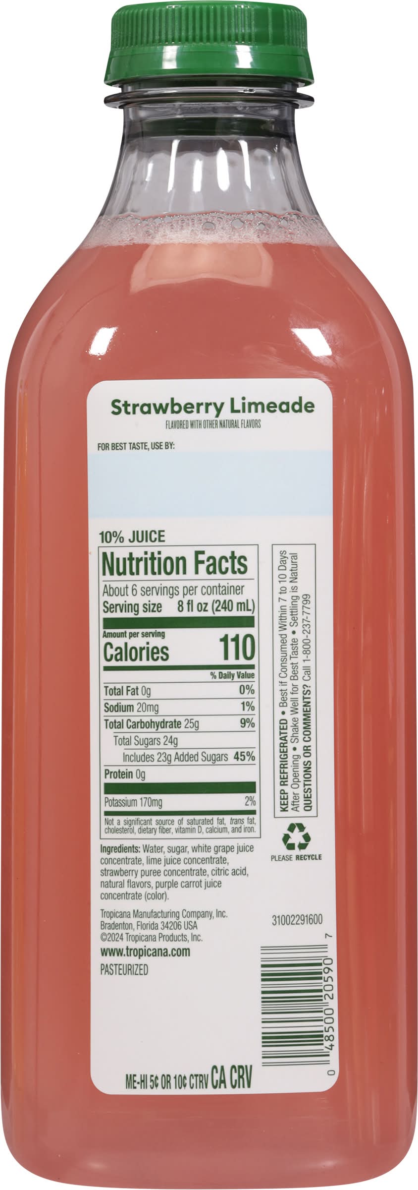 Tropicana Refreshers Limeade, Strawberry (46 fl oz)