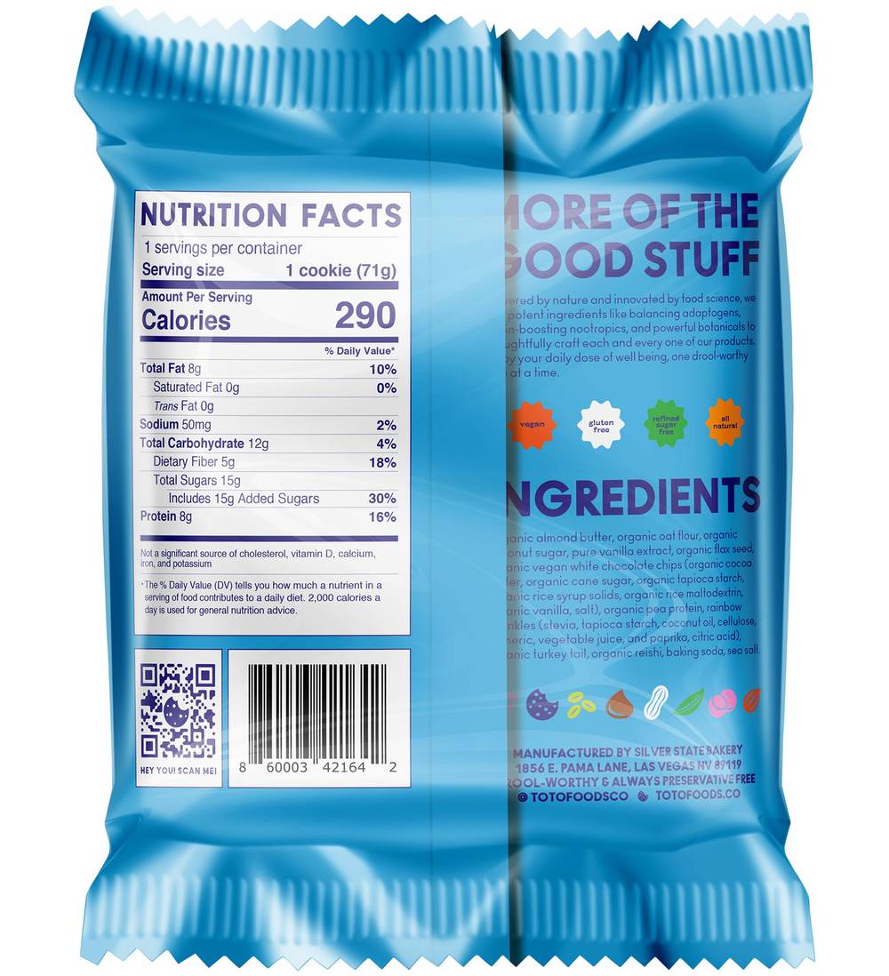 Made of SuperfoodsVegan100% Plant-basedDrool-worthy DeliciousGluten FreeLow SugarNothing Artificial, Ever Best in class flavor meets the most nourishing, high-quality plant based ingredients. We're putting the fun back in functional, one ooey-gooey bite at a time. With nourishing plant-based protein and gut-healthy fiber, Toto is the perfect midday snack, post workout protein, or drool-worthy dessert any time of day.