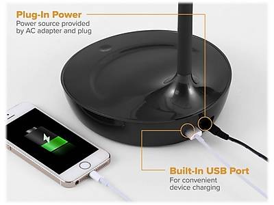 Light up your work zone with this sleek and adjustable gooseneck desk lamp. It features a silicone neck that is easily flexible, so you're able to get strong light anywhere. Don't squint your eyes, trying to read documents through dim illumination. This LED lamp includes three brightness levels and a dimmer function for perfect task lighting. Read, study, and even relax. The desk lamp is easy to use as it's controlled by a touch sensor. No more fishing for an on and off switch in the dark. It is both cost- and energy-efficient thanks to the LEDs that use 85% less energy. For easy charging at your desk or bedside table, this 4.5W black desk lamp even includes an integrated USB port. Charge your phone, tablet, and other important devices. Team up this lamp with Bostitch matching Konnect items for the greatest desktop layout you've ever seen. - Adjustable gooseneck desk LED lamp is great for a variety of work or home spaces - 4.5W LED bulb - Sleek and adjustable black lamp with flexible, silicone neck to easily position light zone - Power source is provided by AC adapter and plug - Dimmer function with three brightness levels - Easy-to-use, touch-sensitive power control - Built-in USB port for convenient device charging - Uses cost-efficient LEDs that last up to 25000 hours and utilize 85% less energy than incandescent lamps - Flicker-free light zone that is clear of shadows, halos, and troublesome glares - 3-year manufacturer limited warranty