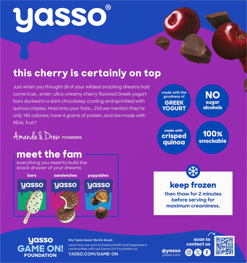 Yasso Frozen Greek Yogurt Bars, Cherry-Chocolate Crunch (10.6 fl oz, 4 ct)