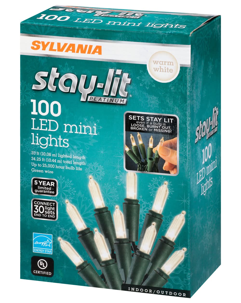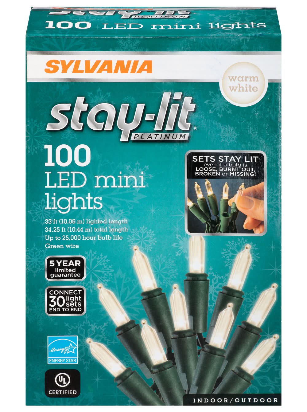 Sylvania Stay-Lit Platinum Warm White Led Mini Lights (2 lbs, 100 ct)