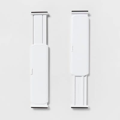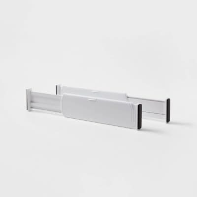 For customized storage in your drawers, pick up this Set of 2 Plastic Drawer Dividers from Brightroom. Made with plastic for a lightweight design, this set of two drawer dividers helps keep your items separate and organized. It comes with an adjustable length to easily fit in a variety of drawers. Use these white drawer dividers in a variety of spaces for convenient organization. Brightroom See your space in a new light. Color: White