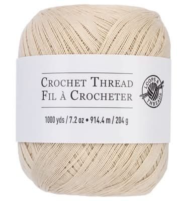 Find the Crochet Thread by Loops & Threads at Michaels. This crochet is ideal for creating bold accessories and accents. Available in assorted colors. 7.2 oz. (204 g). 1,000 yd. (914.4m). 100% cotton • Color: Natural • Size: 1000 yds